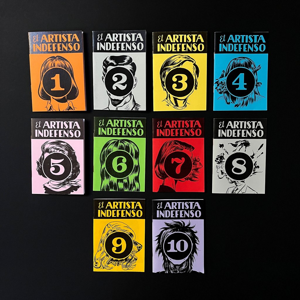 El artista indefenso es un conjunto de 12 mini fanzines hechos con fotocopias para llevar a las ferias fanzineras.