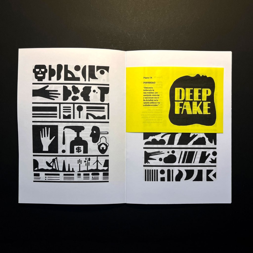 TXT SIMULADO #3 reúne dibujos y composiciones en las que la información es sólo una promesa estética. En esta ocasión la evolución de dichas representaciones nos lleva desde el scroll infinito de las Redes Sociales hasta las representaciones totémicas.